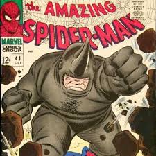 Rhino was not in Sam Raimi's Spider-man trilogy, but he was included in Spider-man 2 the game and the Amazing Spider-man game. He also appears in Spider-man tv shows and comics too. His first comic book appearance was him being a Russian crook who was named Aleksei Mkhailovich Sytsevich and was taken to a prison where he met 2 scientists who created him a special gray super-strong hide which he wore that gave him the horn and appearance of a rhino. Calling himself the Rhino, he was assigned to kidnap John Jameson for his military secrets and he encountered Spider-man who he fought with. Spider-man found out that the Rhino's weakness is charging one way without being able to turn. Spider-man then made special webs that melted the rhino suit off the Rhino. At jail again Rhino encountered the same 2 scientists which gave him a more powerful Rhino suit that was extra strong. Rhino usually has a gray suit with rhino feet and horn above his face and fake rhino eyes in the sides of his head. His new rhino suit he got had armor and a more darker color. The ultimate Rhino suit is mechanical and sports glowing eyes and other things that make him resemble a giant robot, and his name changes from Aleksei to Alex O'Hirn and the suit is called R.H.I.N.O.. Spider-man defeats him by creating a short circuit in the R.H.I.N.O. suit. The Rhino in the Spectacular Spider-man tv series resembles the first version only making him bigger and his suit never comes off. He was a crook working with Flint Marko to rob banks and he was given a rhino hide by Dr.Octopus. he also gets dehydrated when running too much and get very tired. Rhino appears in the Ultimate Spider-man tv series and he is a teenager bullied by Flash Thompson and he steals a rhino serum which turns him into a real rhino/human creature and wants to get revenge on Flash only to be stopped by Spider-man. In these 2 tv series Rhino's human name is Alex O'Hirn.